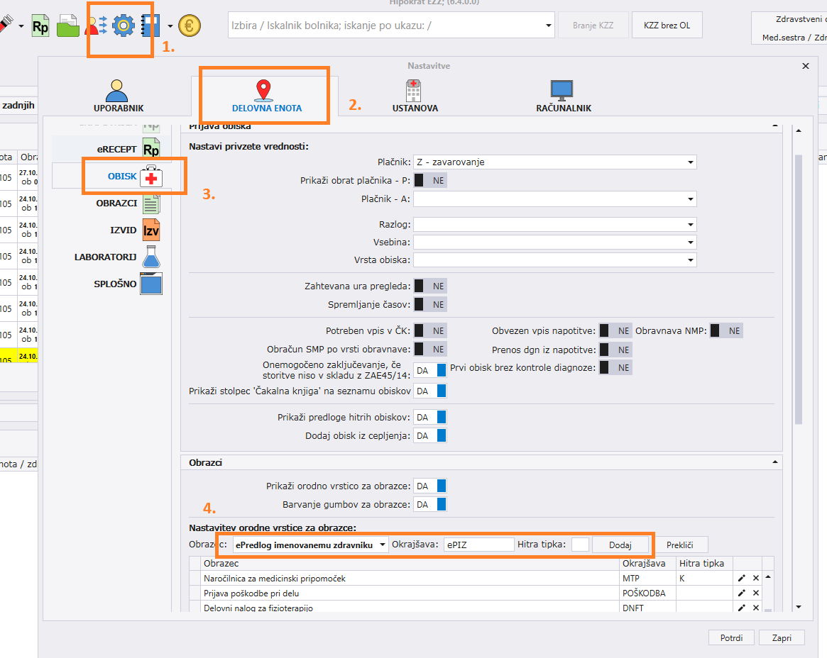 4. Pri Nastavitvi orodne vrstice za obrazce poiščite in izberite želeni obrazec in ga poimenujte (okrajšava)