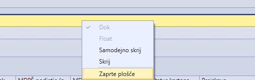 3. Nato desni klik v rumeno obarvani vrstici in izberite Zaprte plošče
